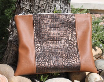 pouch - handbag - camel in faux leather