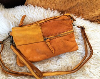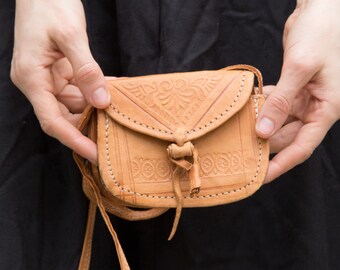 Extra Small Handbag, Camel Brown Bag, Real Leather Coin Purse