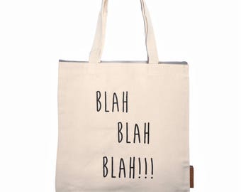 Blah blah blah 100% cotton, 12oz natural canvas tote bag. Ideal for a market bag, handbag, beach bag, shopping bag, grocery bag, library bag