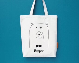 Dapper bear 100% cotton, 12oz natural canvas tote bag. Ideal for a market bag, handbag, beach bag, shopping bag, grocery bag, library bag