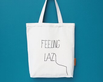 Feeling lazy 100% cotton, 12oz natural canvas tote bag. Ideal for a market bag, handbag, beach bag, shopping bag, grocery bag, library bag