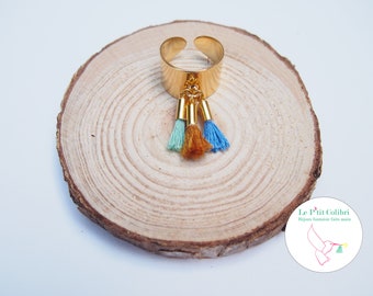 Jungle and his camel, blue and green tassels ring