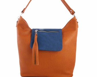 Hobo Bag Shopper BAG,camel with blue Handbag,totes Bag,Shoulder Bag,Crossbody Bag, camel with blue briefcase,stiff handbag