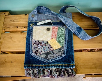 upcycled denim handbag