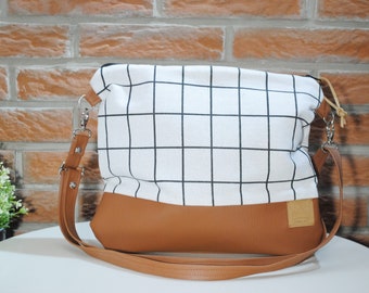 Shoulder bag. Handbag handmade gift for teacher. Adjustable shoulder strap. Small woman handbag in vegan leather with zipper