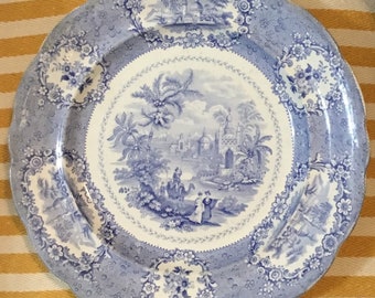 W Ridgway Oriental Pattern Featuring Camel Blue and White Plate 1830-1840