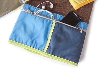 Large Beach Towel with Zipped Pocket - 100% Cotton - Size 100cm x 180cm (39" x 71")