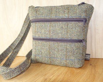 Herringbone Harris Tweed across the body bag with zipped pockets