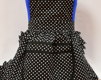 Retro Vintage 50s Style Full Apron / Pinny with Large Zipped Pocket - Black & White Polka Dot