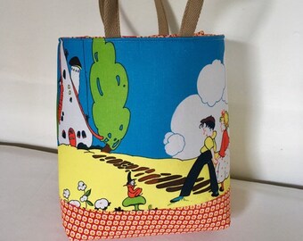 Ladies handbag, folksy fabric, fabric handbag, folksy fairy, ladies tote bag, zipped handbag, folksy print
