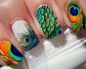 Peacock Feather nail stickers made on high quality decal paper.