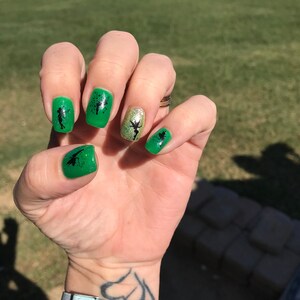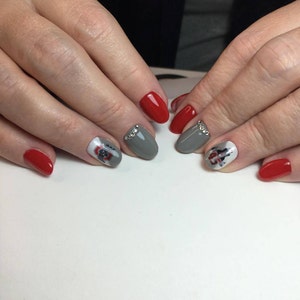 These decals can be applied to any type of nails (regular polish, soak off gel, hard gel and acrylic).
