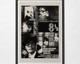 VINTAGE FILM POSTER - Federico Fellini Movie Poster - 8 1/2 Movie Poster, Classic Film Poster, Classic Movie Poster