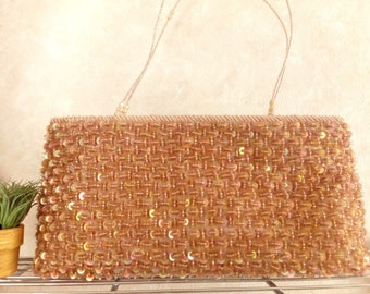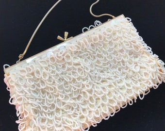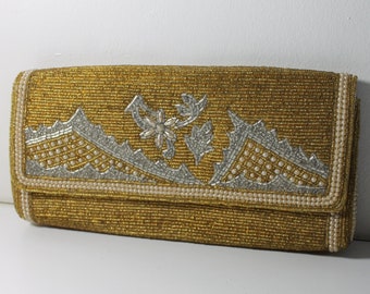 Vintage Japanese Clutch Bag, Vintage Gold Purse, Vintage Japanese Purse, Vintage 70s Purse, Seed bead Purse, Pearl Gold Purse Bag,