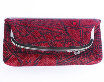 Vintage Japanese Clutch Purse, Shiibori Silk Bag, Fold Over Clutch bag, Kimono Clutch Bag, Red Clutch, Women Clutch Bag, Made in Japan