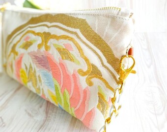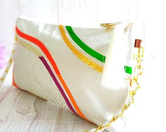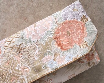 bridal clutch bag recrafted from Vintage Japanese Kimono Obi, wedding clutch, handbag clutch white, Japanese clutch