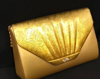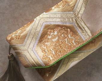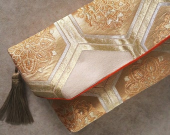 gold clutch recycled from vintage Japanese Kimono Obi, kimono handbag, evening clutch bag, wedding clutch
