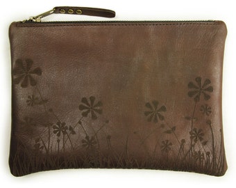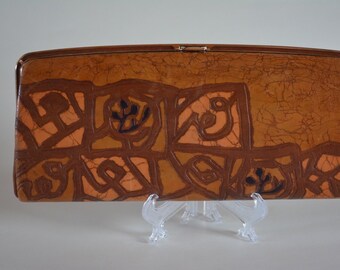 Vintage Japanese Clutch Purse, Brown Leather Bag
