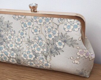 Bridesmaid clutch from Japan, White clutch bag, Shoulder wedding clutch, Japanese silk evening bag
