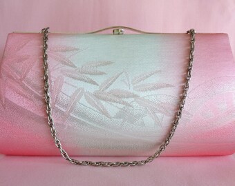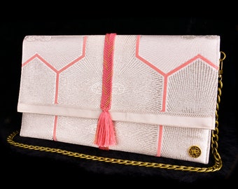 Pink Clutch,Silver Clutch,Sustainable bags, kimono clutch bag,Japanese Obi Bag,Gift For Her,Japanese Fashion,Handmade bag,Japanese clutch