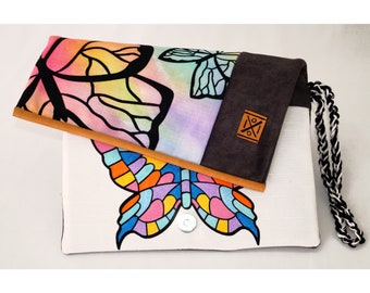 clutch bag Grey Butterfly hand painted Office Party Handmade Luxury cloth bag