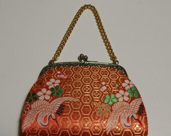 50% Discount Vintage Japanese Gold and Red Silk Kimono Evening Bag Handbag