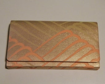 Vintage Japanese clutch with bronze kikkou motif, kimono purse, wallet - Kimono bag - Made in Japan - Gift for kimono lovers