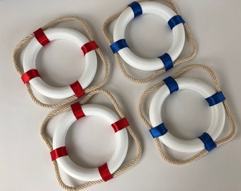 Life Preserver Pillow, Red and White Life Belt, Nautical Salvage