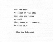 See moreCharles Bukowski Typed Quote "We are here to laugh at the odds..." Vintage Typewriter Inspirational Poetry