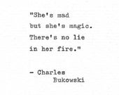 See moreCharles Bukowski Letterpress Quote "She's mad but she's magic..." Vintage Typewriter Love Print Hand Typed Poetry Gift Inspirational Love