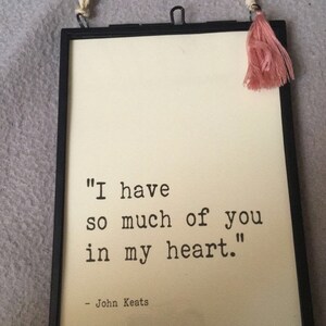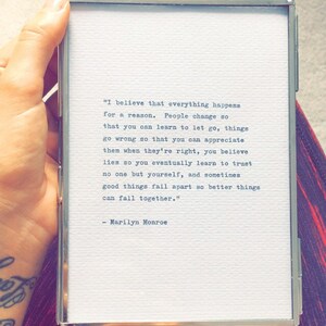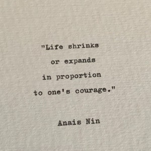 This item would be perfect for displaying in your home, framing, scrapbooking, cardmaking or creating meaningful gifts for the people you love. Each quote is typed by hand which, due to the mechanical nature of the process, will create a unique copy each time it is produced.