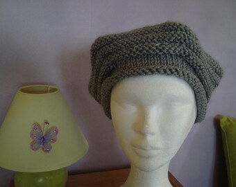 French beret retro merino wool with star-shaped pin handmade circular needles seamless gray tones