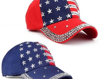 High Quality Rhinestone Star Pattern Baseball Cap Women Men American Flag