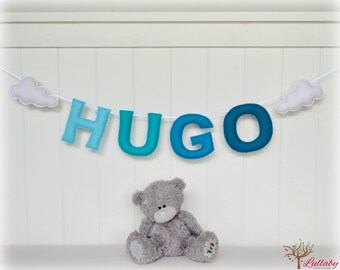Personalized felt name banner - name garland - ombre blue wall art - Nursery decor - MADE TO ORDER