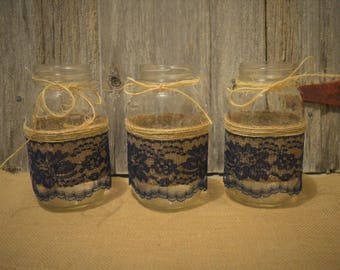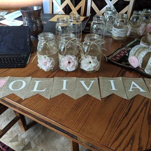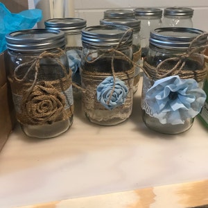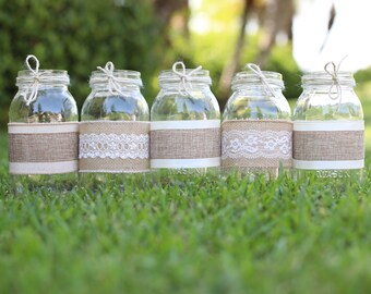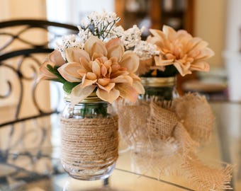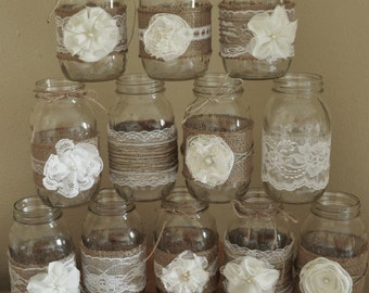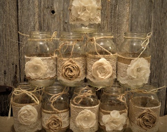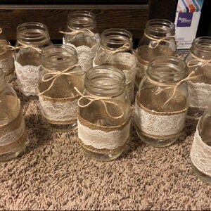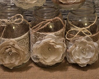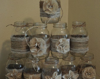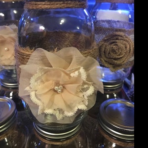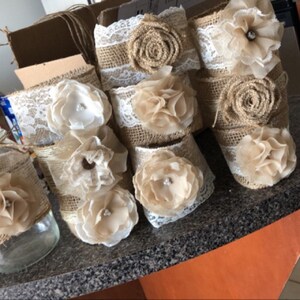 See moreBridal Shower Centerpieces, Rustic Wedding, Burlap Lace Mason Jars, Wedding Centerpieces, No Jars, Mason Jar Wedding