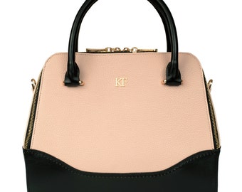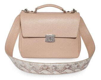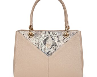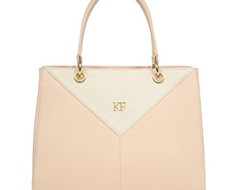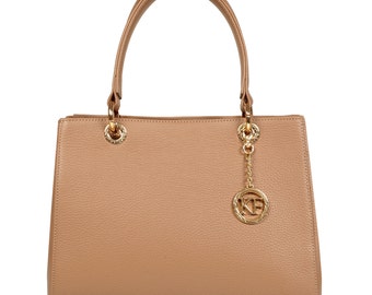 Leather Top Handle Bag, Beige Leather Handbag Top Handle, Women's Leather Bag KF-337