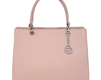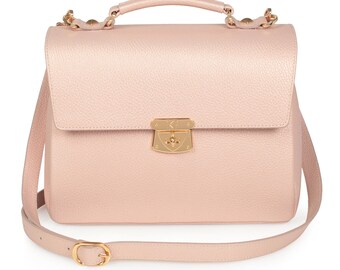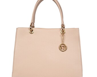 Leather Top Handle Bag, Beige (powder) Leather Handbag Top Handle, Women's Leather Bag KF-3013
