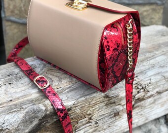 Small red beige handbag