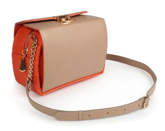 Leather Crossbody Bag, Beige Leather Shoulder Bag, Women's Leather Cross body Bag, Leather bag KF-1977