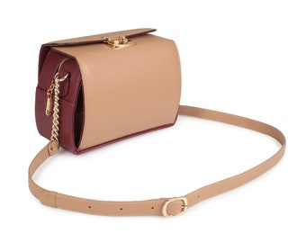 Leather Crossbody Bag, Beige Leather Shoulder Bag, Women's Leather Cross body Bag, Leather bag KF-2055