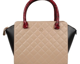 Leather Top Handle Bag, Beige Leather Handbag Top Handle, Women's Leather Bag KF-1112