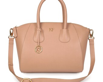 Leather Top Handle Bag, Beige Leather Handbag Top Handle, Women's Leather Bag KF-547