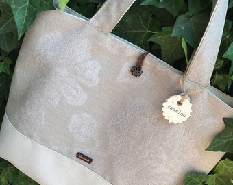 Beige tote bag, Beige handbag, White bag, Floral handbag, Reversible, Summer bag