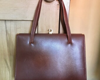 vintage leather women's bag; 70's handbag