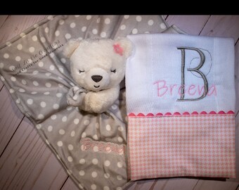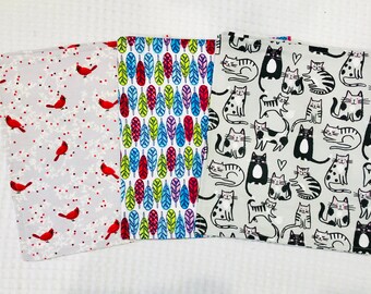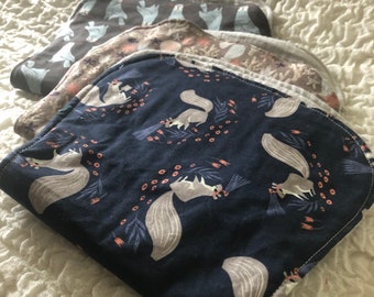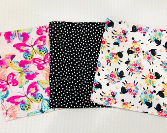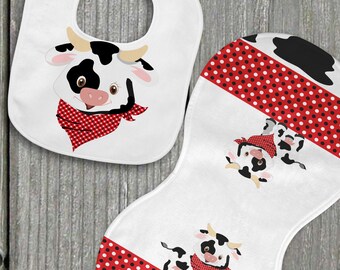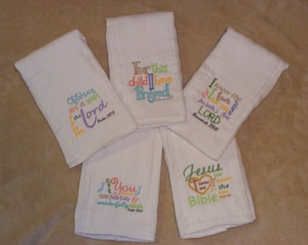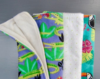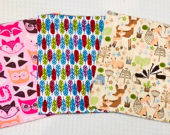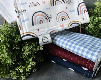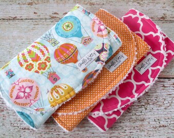 SWEET STRAWBERRY, Burp Cloth Bundle, newborn gift set of 4 coordinating cloths in hot pink and red for baby GIRL