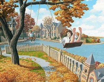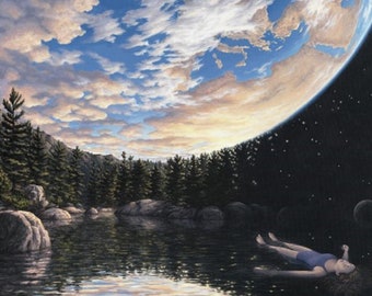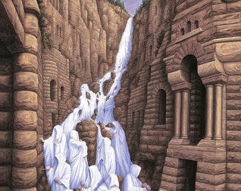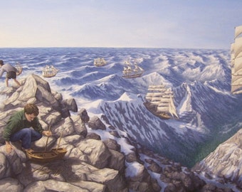 See moreMind-Twisting-Optical-Illusion-Paintings-By-Rob-Gonsalves Reprint of Lady of the Lakes Art for Living Room or Den Vintage Art Decor