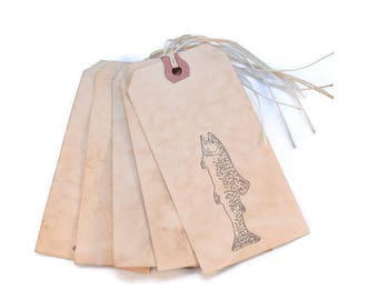 Fish Gift Tags, Favor Tags, Fish Tags, Tea Stained Tags, Merchandise Tags, Hang Tags, Party Decor, Primitive Tags, Gift Tags, Rustic Tags