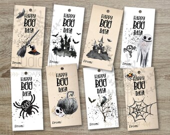 Printable Halloween Favor Tags, Kids Halloween Party Favor Tags, Treat Bag Tag diy, Halloween Party Decoration diy, set of 8 Halloween tags