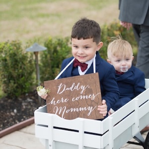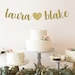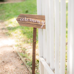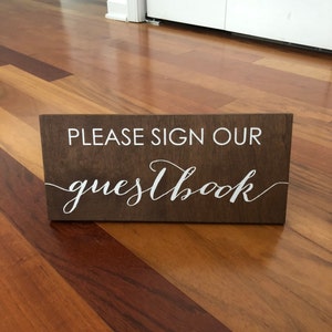 The sign pictured measures approximately 24" x 24". The wood is dark walnut with the lettering painted in white. Please provide the names and date that you want to include on your sign in the notes at checkout.
