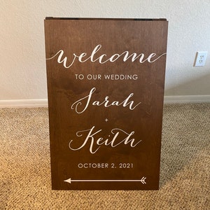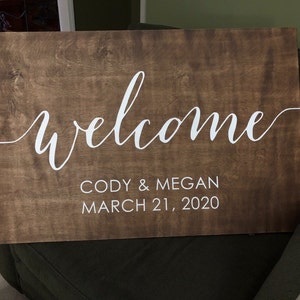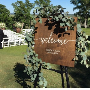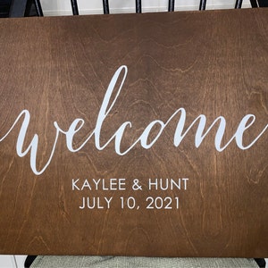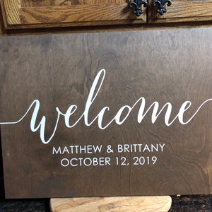 Wedding welcome sign, Welcome wedding sign, Welcome sign for Wedding, with bride and groom names date, Wood signage party, rehearsal dinner